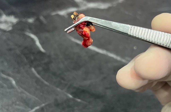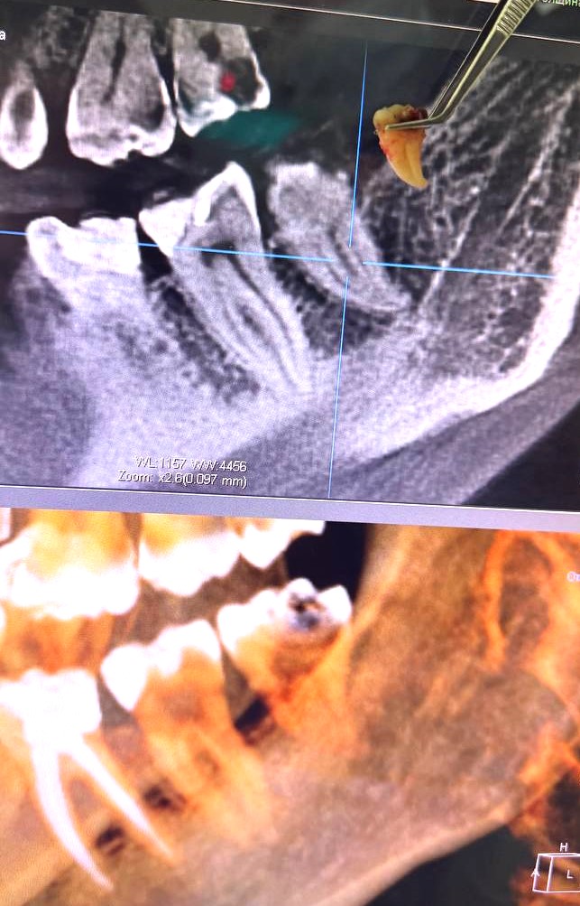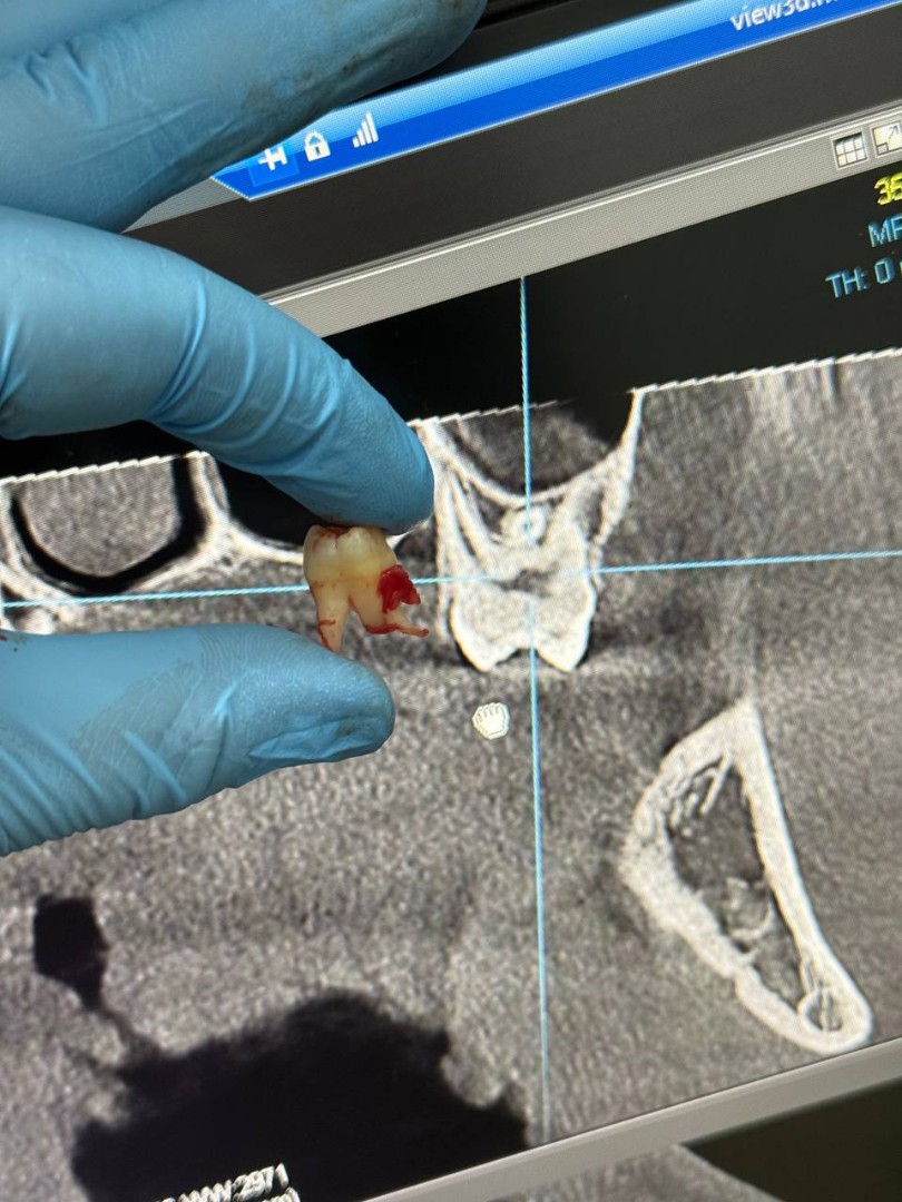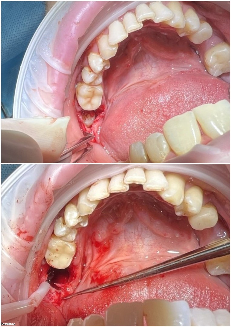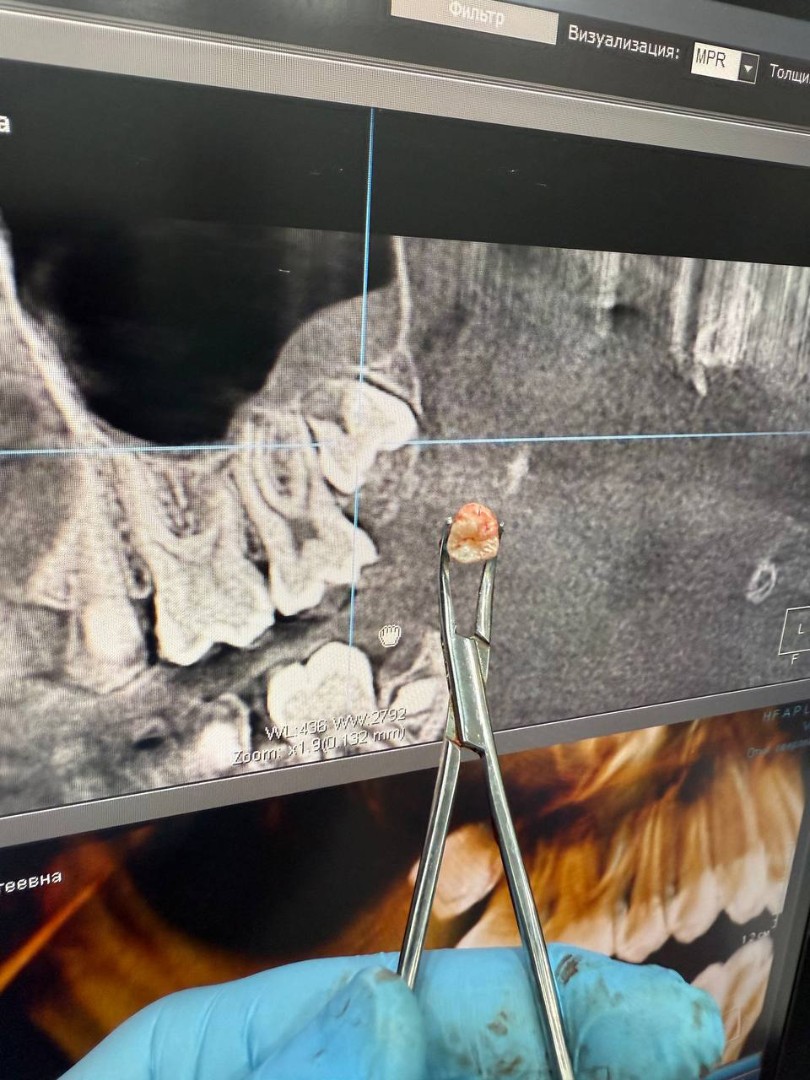 Зуб извлекается частями, что позволяет не травмировать окружающие ткани.